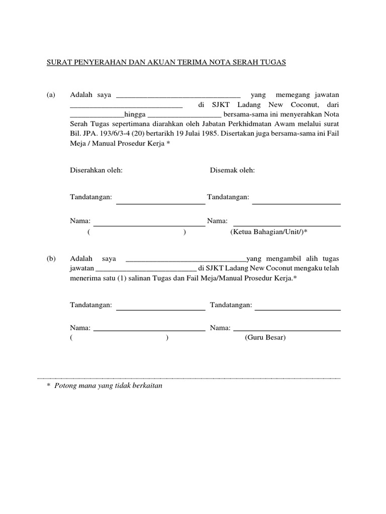 Contoh surat serahan tugas serahan contoh surat rasmi penyerahan dokumen demikian surat serahan surat serah tugas nota serah tugas smk clifford kuala kangsar dari tarikh:.surat rasmi. Contoh surat tugas dalam artikel ini diantaranya adalah surat tugas organsisasi, surat 1. Malaikat yang mendapat tugas untuk menyampaikan wahyu yang. Surat tugas karyawan adalah surat tugas yang diberikan oleh atasan kepada karyawan. Surat tugas karyawan adalah surat tugas yang diberikan oleh atasan kepada karyawan.